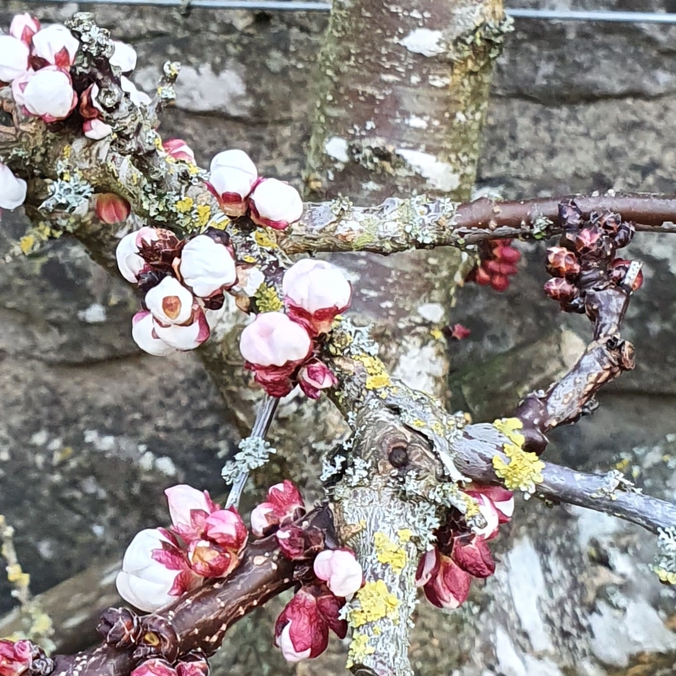 There was no pollinators at all when the Apricots went into blossom…this isn’t very unusual but 3 big storms threatened the delicate blooms. We got away with it unscathed. Some of our Apricots are on a south facing wall. I fleeced what i could and hoped for the best. I also hand pollinated the Apricots but I do this anyway.