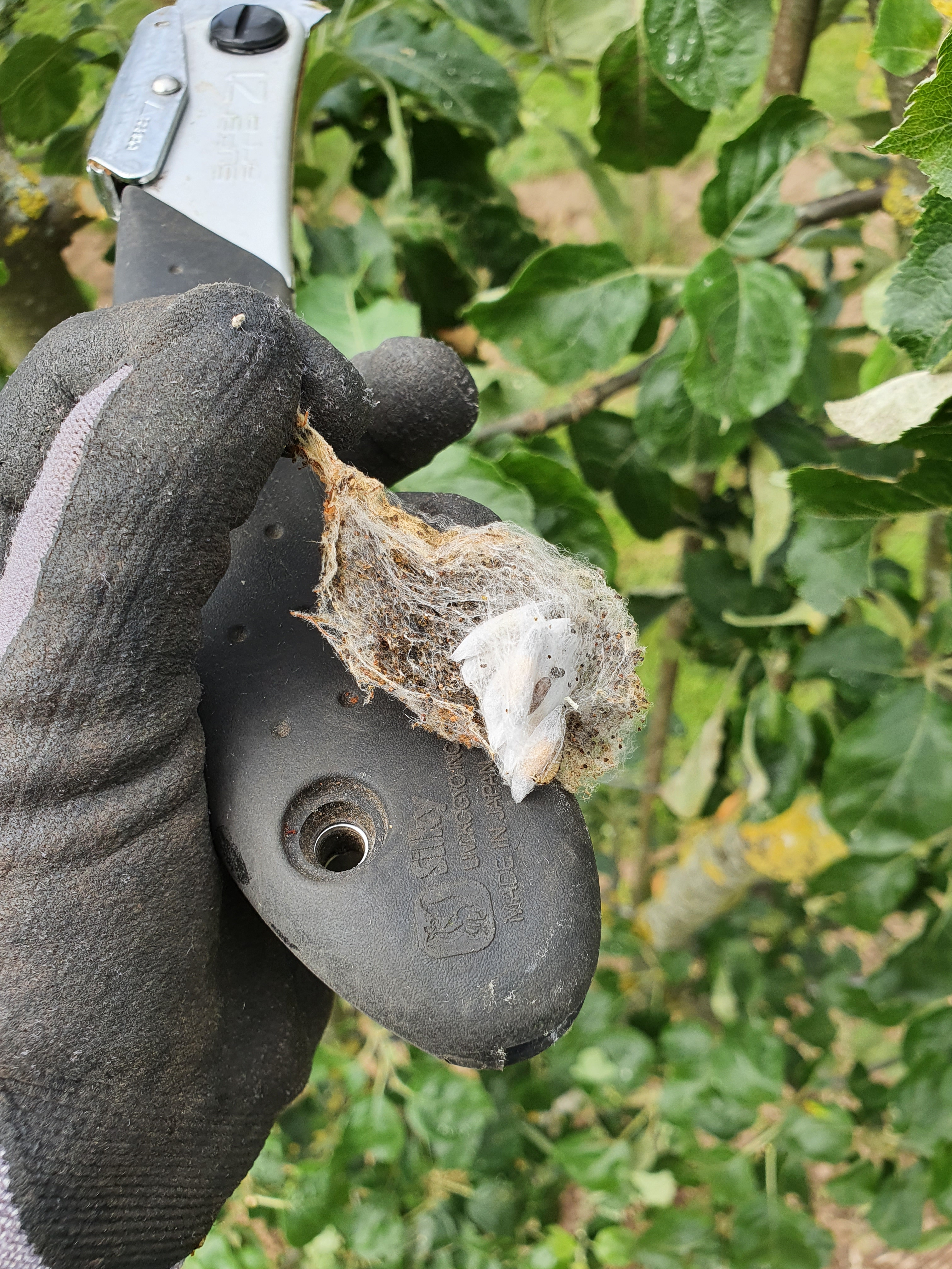 One of the big shocks and first noticeable differences I found coming from a commercially spraying orchard background to an organic one was the caterpillar nests in the orchard. There were what looked like clumps of spider webs everywhere, very unsightly for the guests and so many they would easily decimate the tree quickly as they grew.