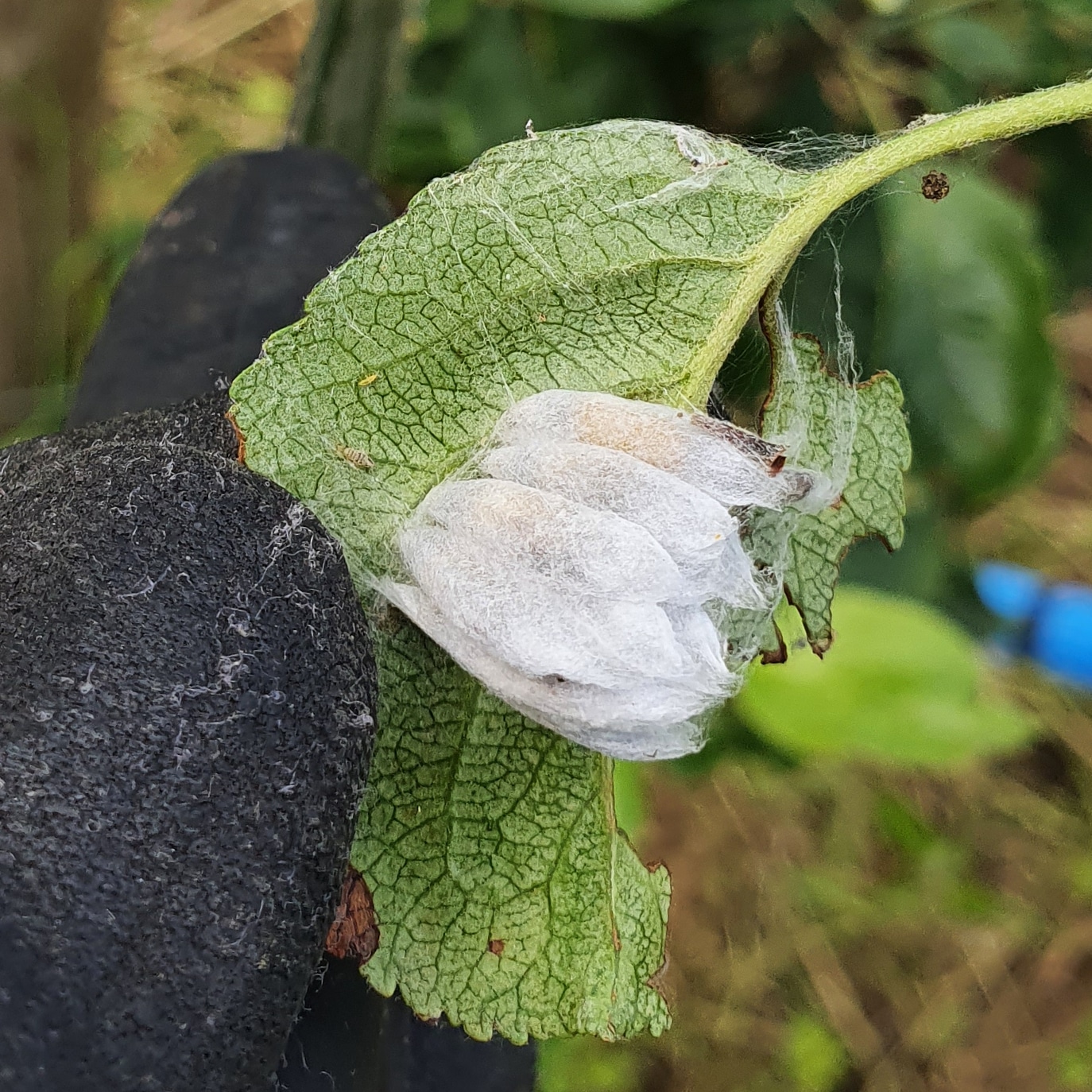 Last year I came a bit late into their lifecycle so they had really got established, this year I’m on it earlier. Managing to grab them as I go about my other orchard jobs. Ripping the nests open and leaving them in the rows for predators to get them. Now this approach may not work and I may have to learn the hard way but…if it doesn’t work, I’ll just have to take them off by hand again!
