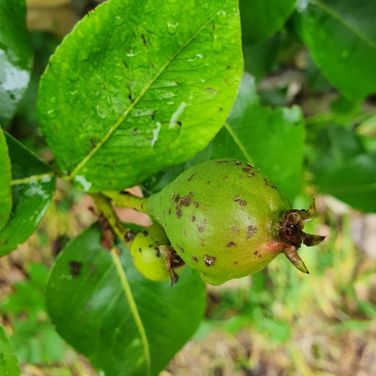 Its not just the fruitlets affected. The leaves are shredded too. Really not good for photosynthesis…afterall, hail pitted fruit still needs feeding! One problem faced in this orchard which I didn’t have in my agricultural orchard is now the guests are walking around looking at damaged, unsightly fruit and leaves.