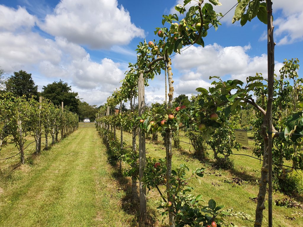 With so many varieties (we have 153 varieties of apple) there are some that need a slightly different treatment. I’ve left the Bramleys alone except to prune the row to allow tractors and foot traffic in. Bramleys are susceptible to sunburn and although a little blush is ok, especially as I’m not commercially growing now but I’m trying to keep them their Bramley green. The Blenheim Orange are very vigorous almost like the Bramley so I’ve just lightly pruned them to allow a bit of light in. I need them to go the familiar Blenheim Orange colour…but not sunburnt!