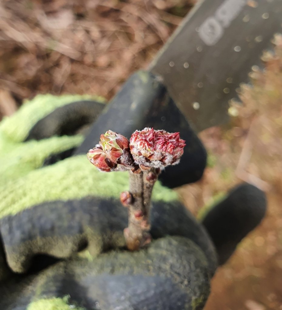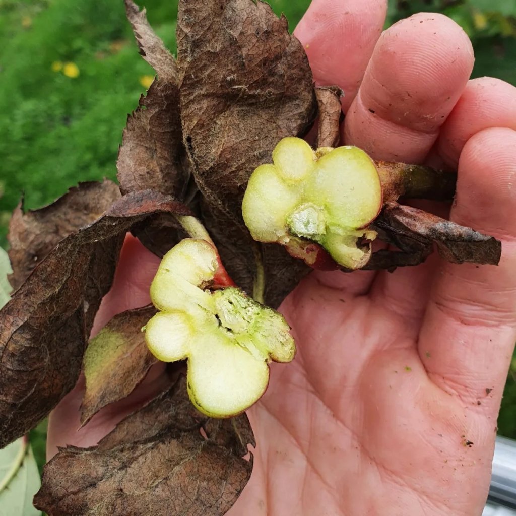 It doesn’t happen often and anything can cause it. Generally it’s thought to be some kind of damage. Whether animal (birds, deer, rabbit, aphids), natural (weather), mechanical (tractor, trailer, cultivator)…or man (a knick in the wrong place from the saw or secateurs)! It’s also potentially genetics, bacterial or viral infection. Or maybe a perfect combination of some of the above.
