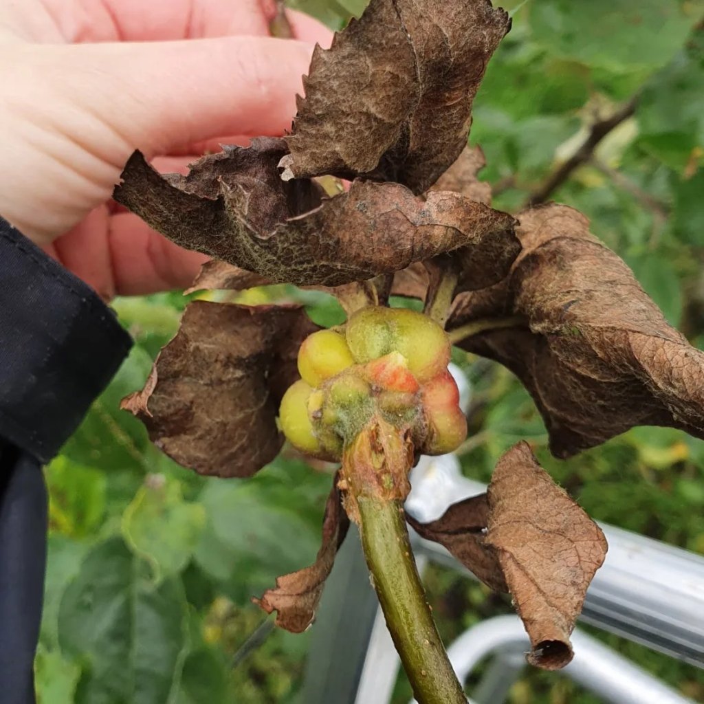 Like I said, it can effect any part of the plant. Branches, flowers, fruit even roots. I mostly find it on the new branches on fruit trees. It seems to be much more prevalent on apples than any other top fruit in my experience.