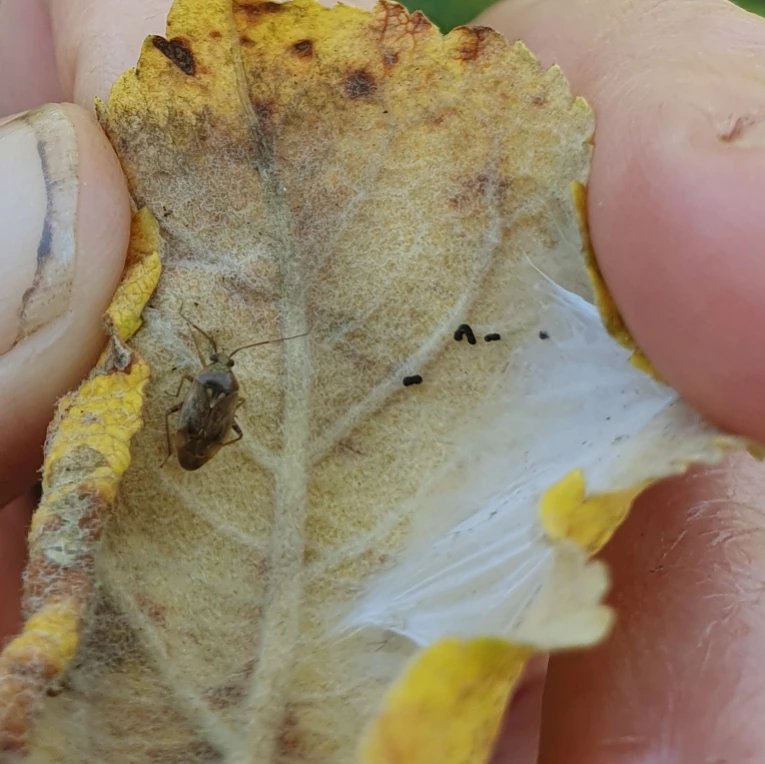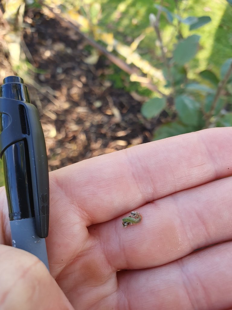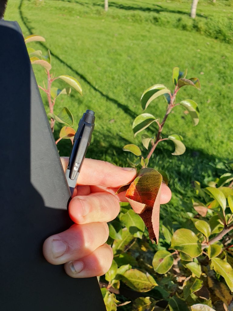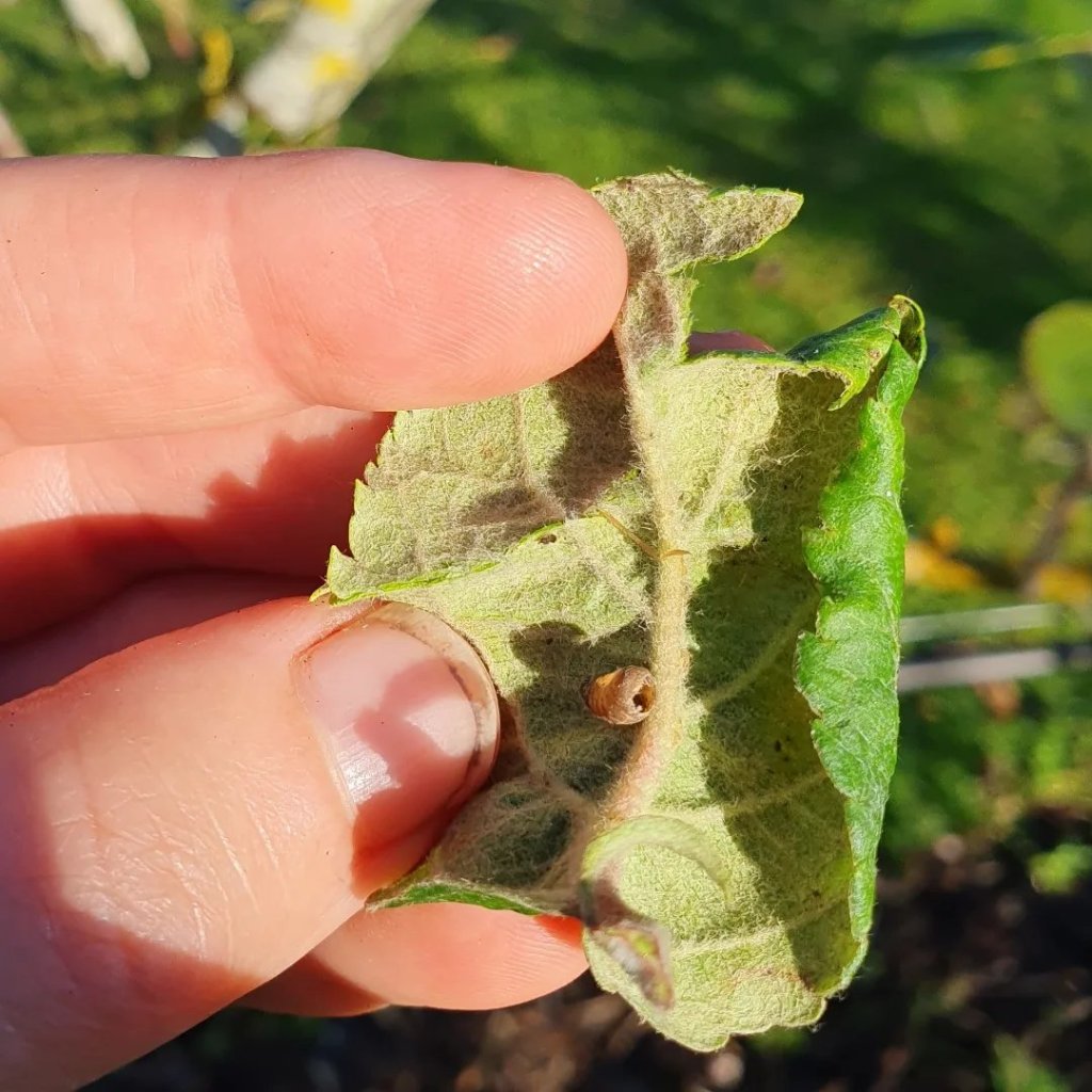 Whilst it was only the pears going into dormancy, the apples had the odd curled up yellow leaf on very green trees. So I unfurled a few expecting late aphids.